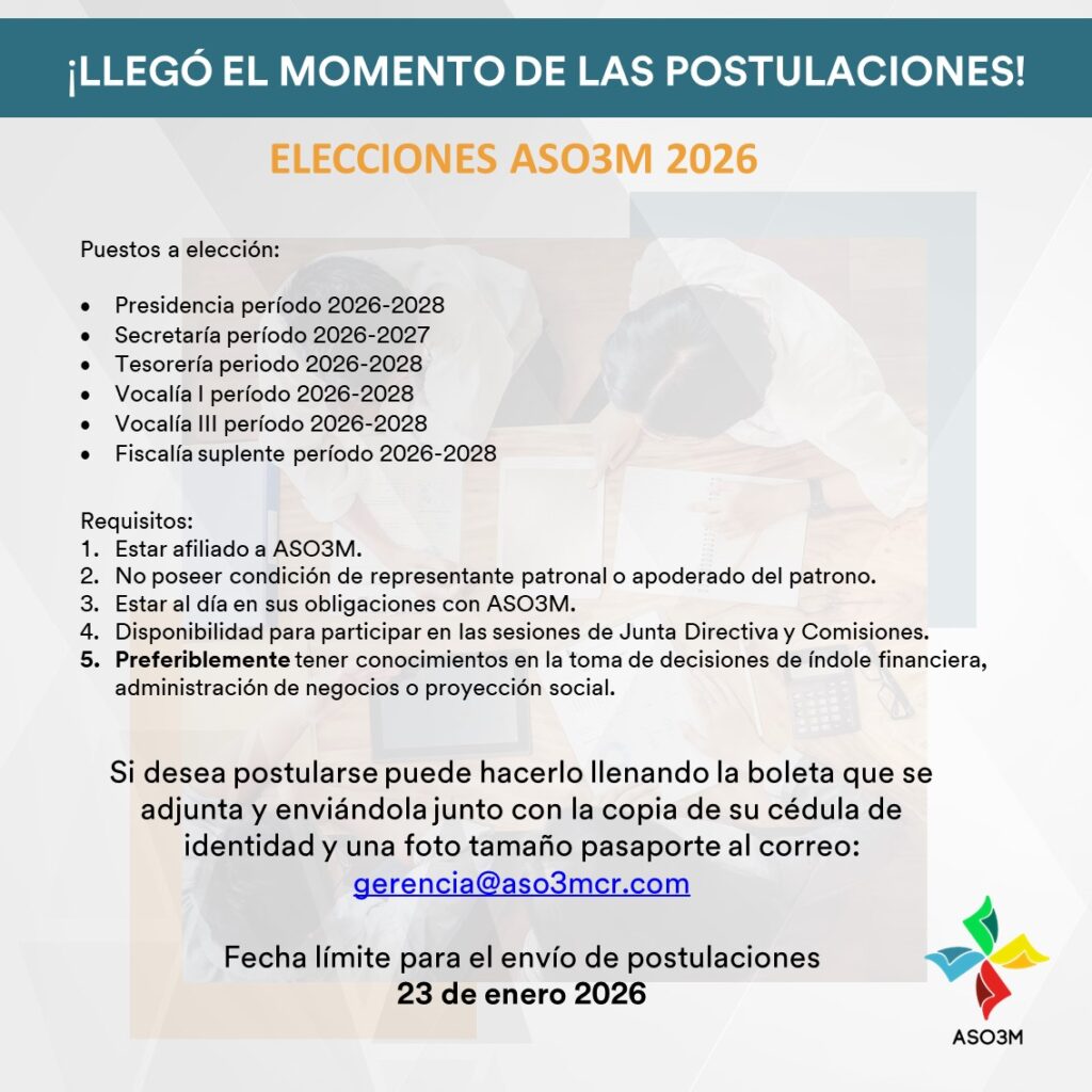 Venta de camisetas18 de agosto de 2025 14 de enero de 2026 Categorías Blog Etiquetas El Tribunal Electoral de ASO3M le invita a postularse Boleta Inscripción de candidatosDescarga Compartir Publicaciones relacionadas18 de agosto de 2025Venta de camisetasLeer más
